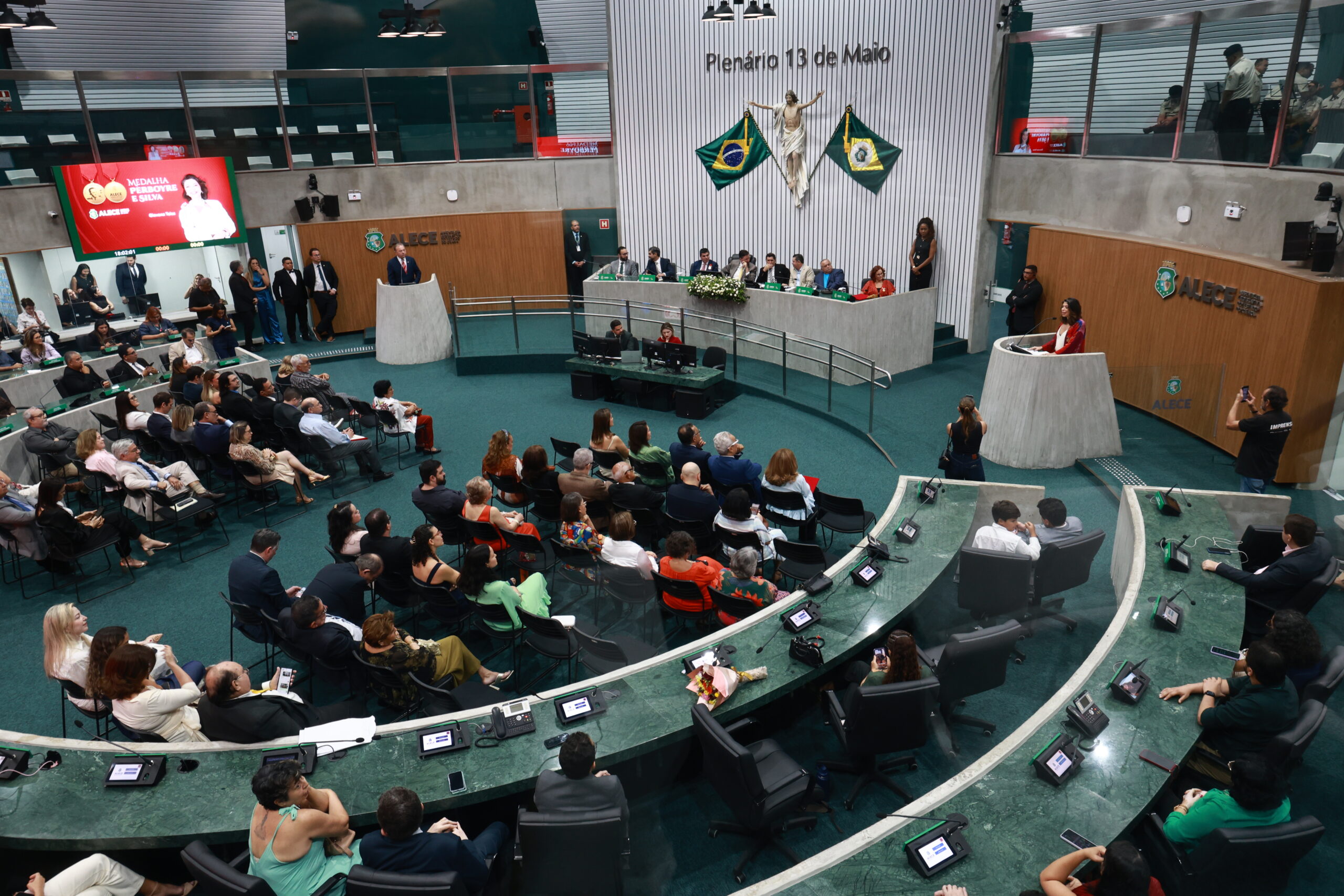 Na cerimônia, o presidente da Alece, o deputado Romeu Aldigueri (PSB), ressaltou que a concessão da honraria, criada pela Casa há 50 anos, reafirma o seu propósito original e a consolida como um dos mais importantes reconhecimentos ao jornalismo. Além disso, lembrou que a medalha leva o nome de um comunicador que é referência no país. “Perboyre e Silva nos deixou um legado de compromisso com a verdade e com a defesa da liberdade de expressão. É esse legado que homenageamos hoje, ao reconhecer profissionais que honram a história que ele construiu”, afirmou.