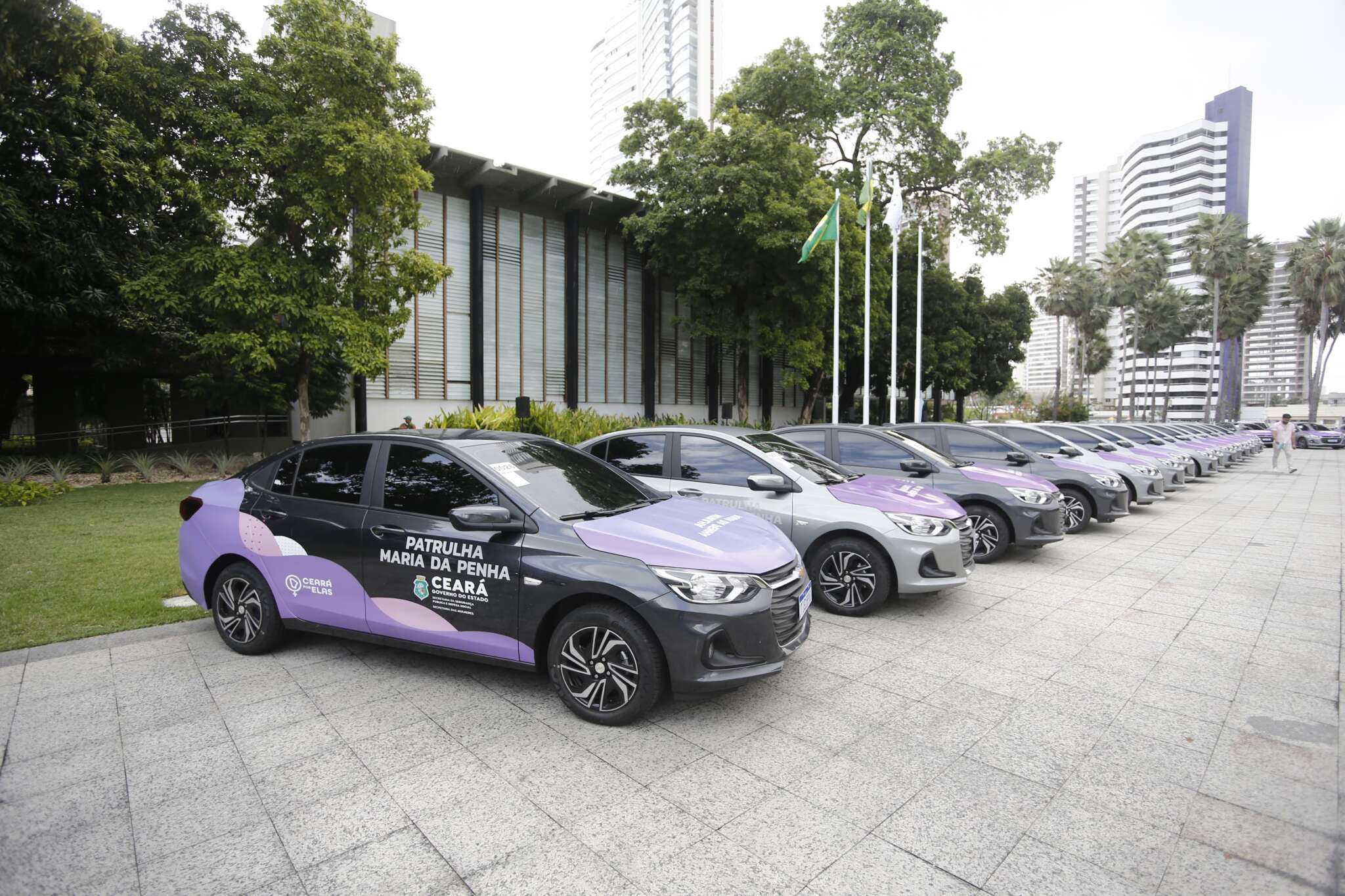 Fortalecendo o enfrentamento à violência contra as mulheres, o Governo do Ceará entregou, nesta quarta-feira (21), viaturas da Patrulha Maria da Penha a 29 municípios cearenses. Além dos veículos, também foram distribuídos kits Athena. A cerimônia contou com a presença do governador Elmano de Freitas, da vice-governadora Jade Romero, da senadora da República Augusta Brito, da secretária das Mulheres Lia Gomes, do executivo de Inteligência e Defesa Social da Secretaria da Segurança Pública e Defesa Social (SSPDS), Alzir Chaves; entre outras autoridades.