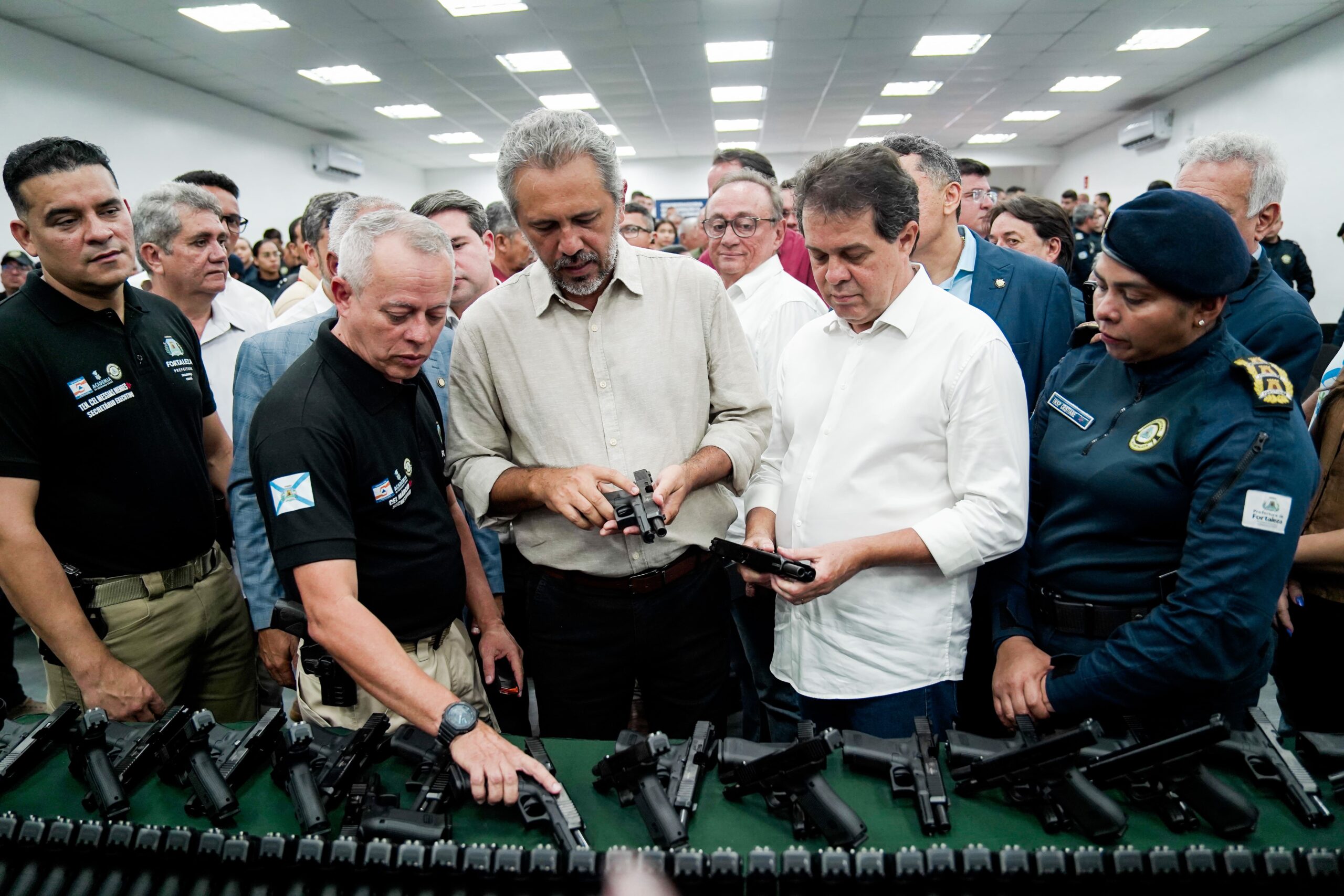“Eu quero parabenizar e agradecer ao prefeito Evandro Leitão e toda a sua equipe, porque, entregando 400 armas à Guarda Municipal, garante que todo guarda que está indo para a rua esteja armado para garantir segurança ao povo”, declarou.