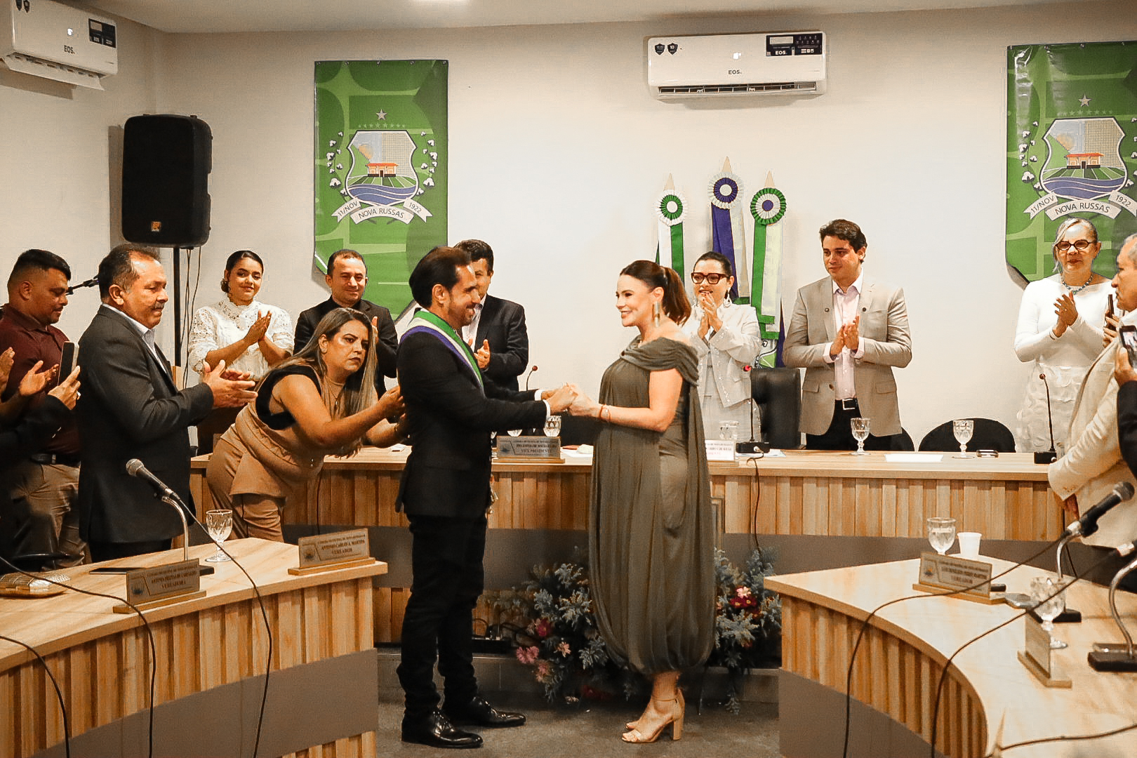 A cerimônia de entrega de faixa contou com a presença do esposo de Giordanna, o deputado federal Júnior Mano (PTB), que deve disputar uma vaga ao Senado na chapa governista, sob indicação do senador Cid Gomes (PSB).